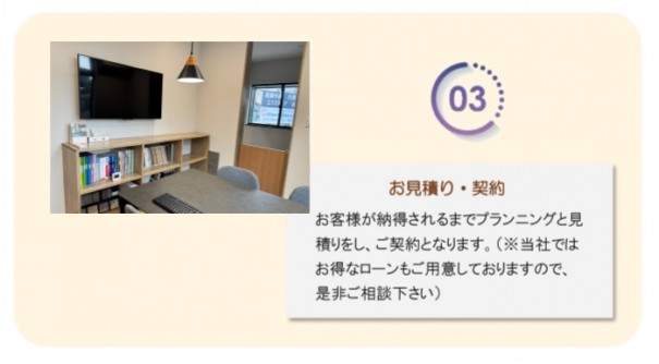 ご相談から工事完了までの流れをご説明いたします。私たちはお客様の想いを大切にし、実現するまで一緒にプランを考えています。どんな些細なことでもあなたの想いを全てお聞かせください。
