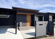 ブラックポリカのネスカFがシャープな印象の平屋外構 加古郡H様邸