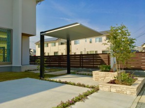 サイクルポートには、スタイリッシュなアルミ屋根とフラットなデザインが際立つLIXILのSCミニを使用しました。