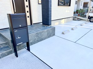 玄関前の宅配ポストは、YKKのポスティモ。