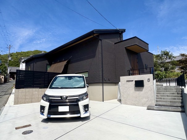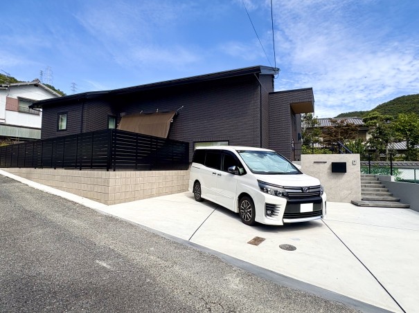 新築外構のご依頼をいただいた姫路市のK様。傾斜のある敷地を活かしながら、お家の外観に合う外構を提案させていただきました。