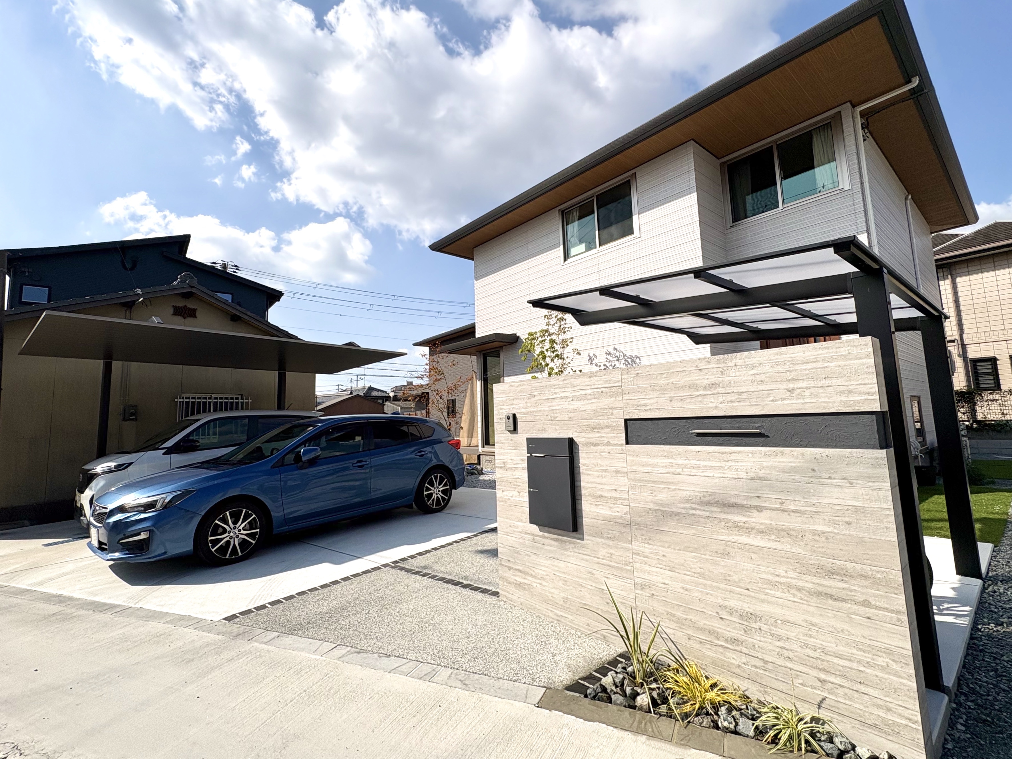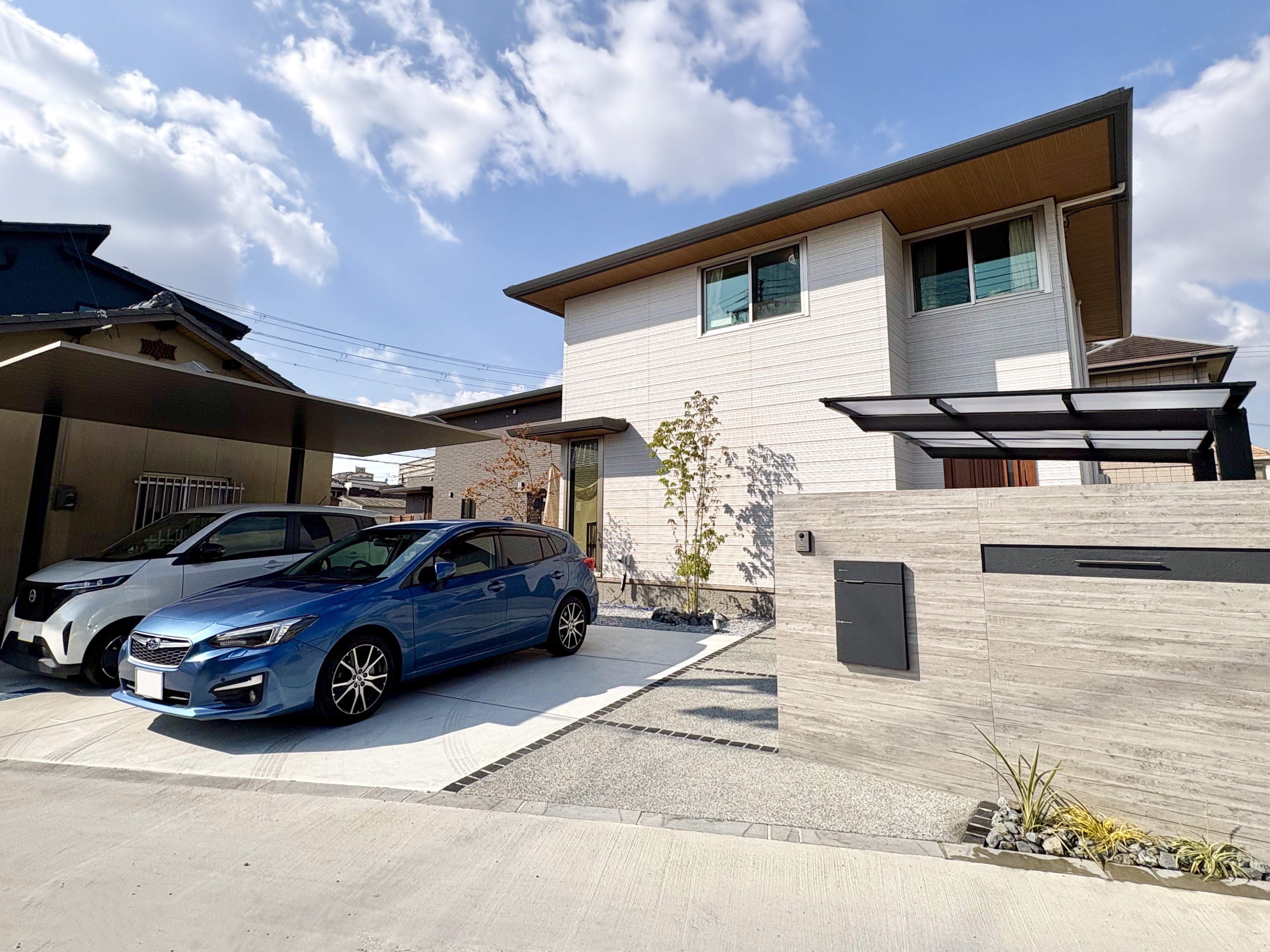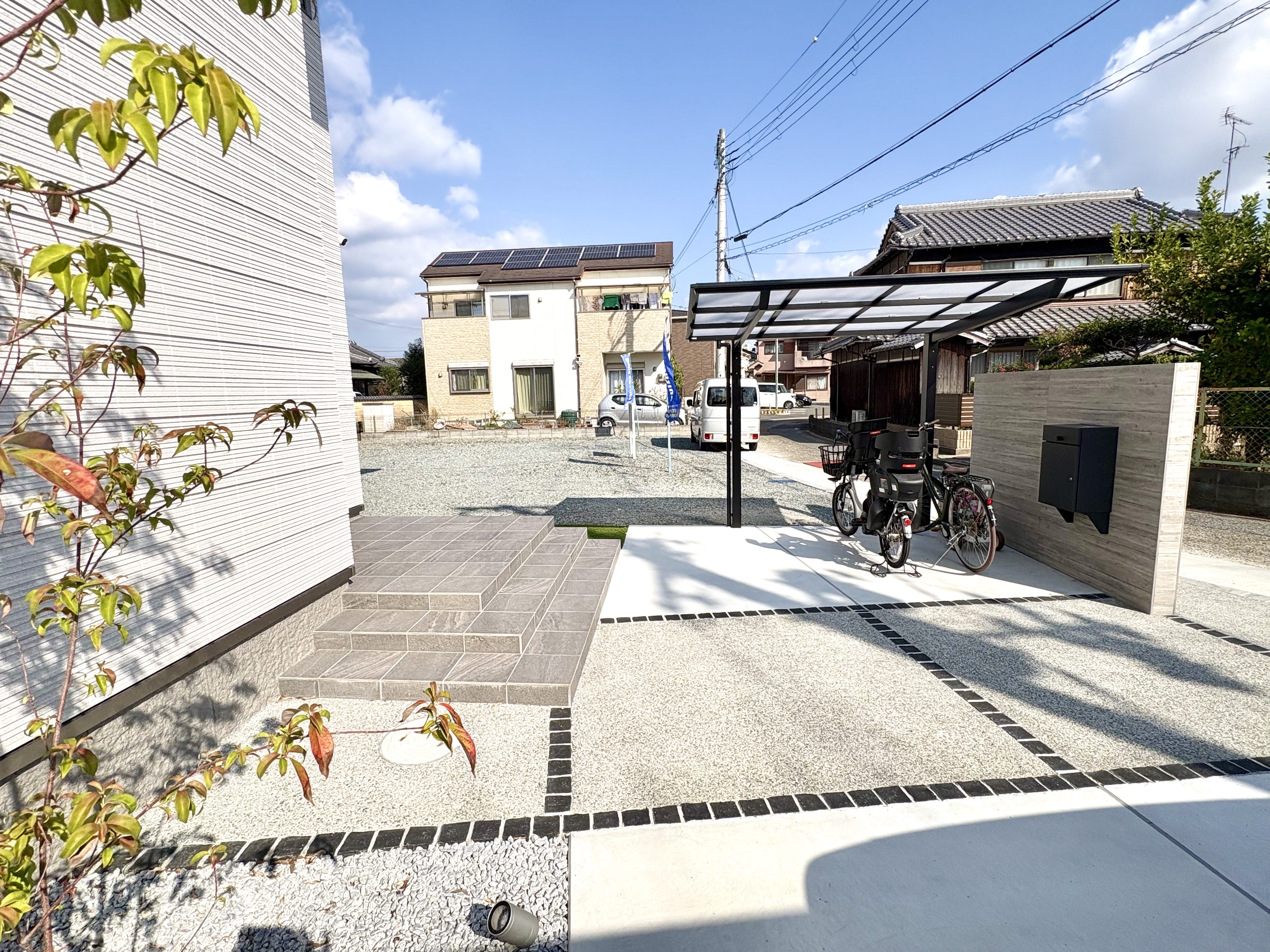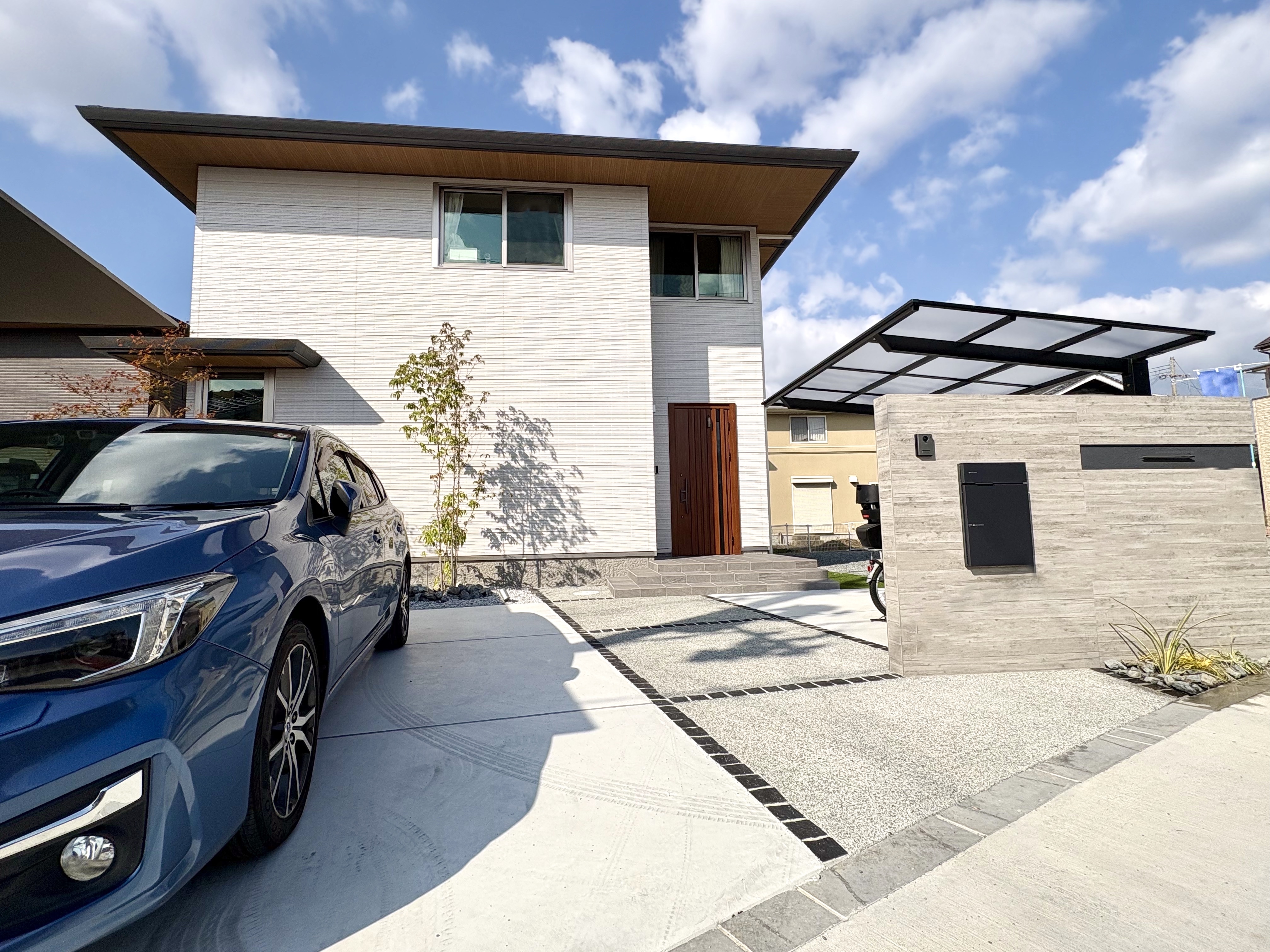 新築外構のご依頼を頂いた加古川市のM様。植栽に囲まれ、季節の移り変わりを感じる外構をご希望でした。