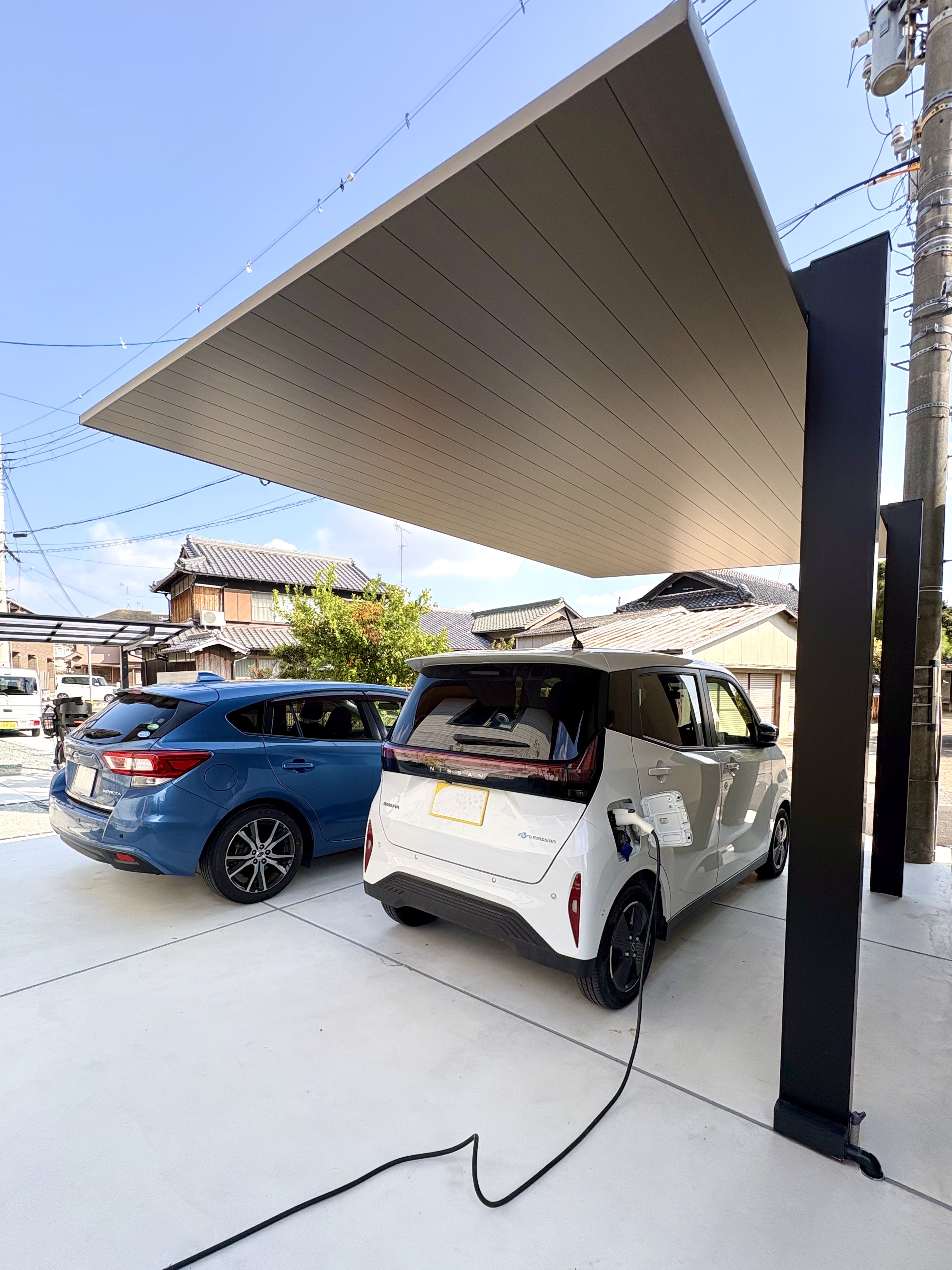 駐車中は外部のEVコンセントから充電しやすいように、ポールを増設しました。
