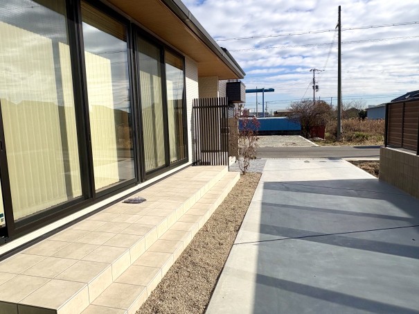以前新築外構をさせていただいたお客様のご実家の、姫路市のM様より新築外構のご依頼をいただきました。平屋のお家に合う、落ち着いた外構をご希望でした。