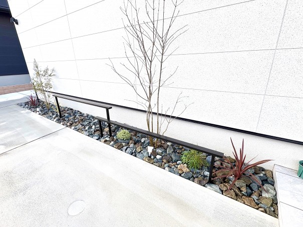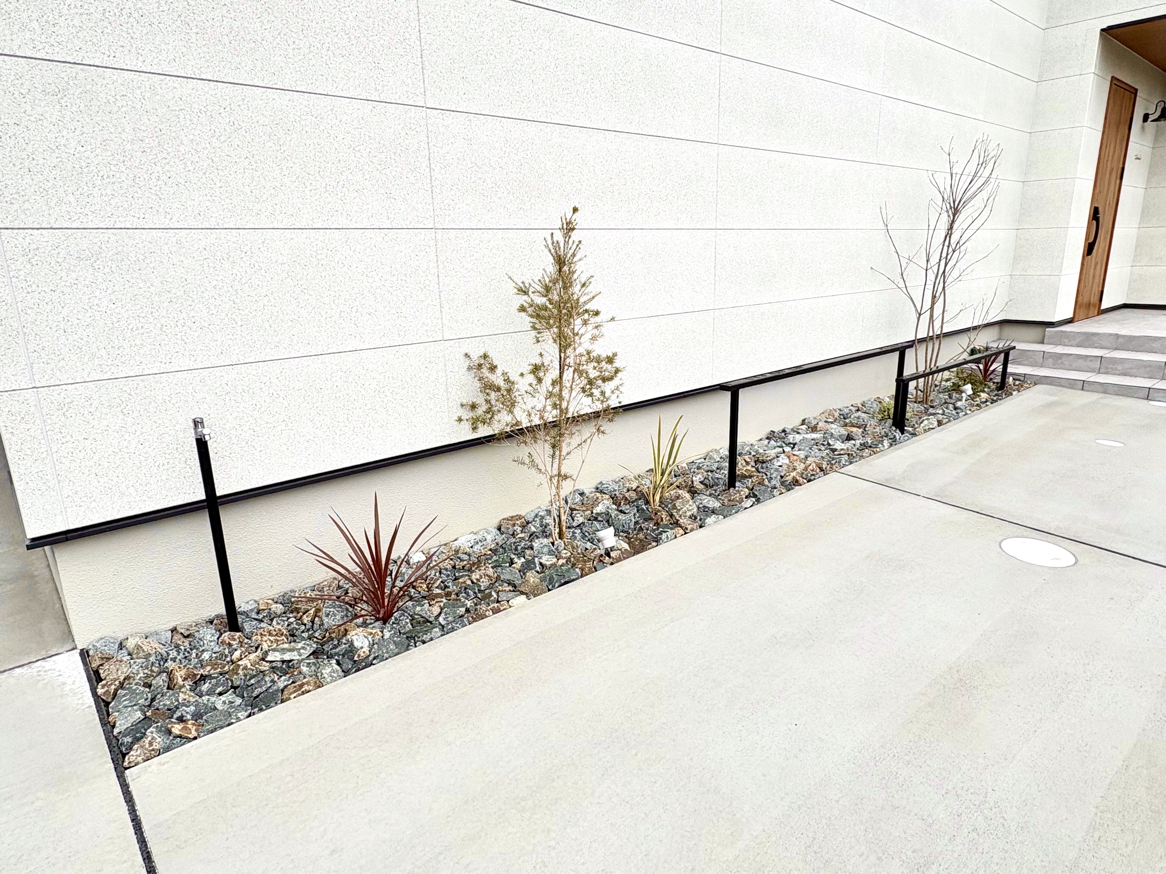 アプローチの植栽のご依頼をいただいた、高砂市のT様。お家の外観に合うスタイリッシュな植栽をご希望でした。