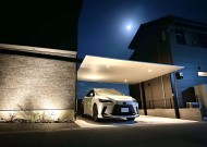 後方支柱のカーポートがファサードを引き立てる 明石市I様邸