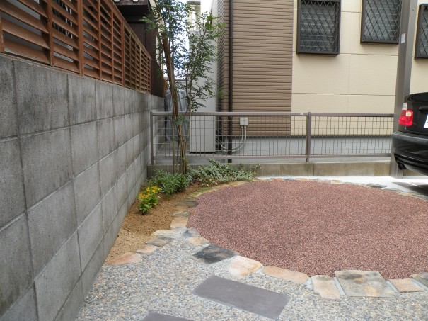 乱形レンガを使ったフラット花壇 加古川市N様邸