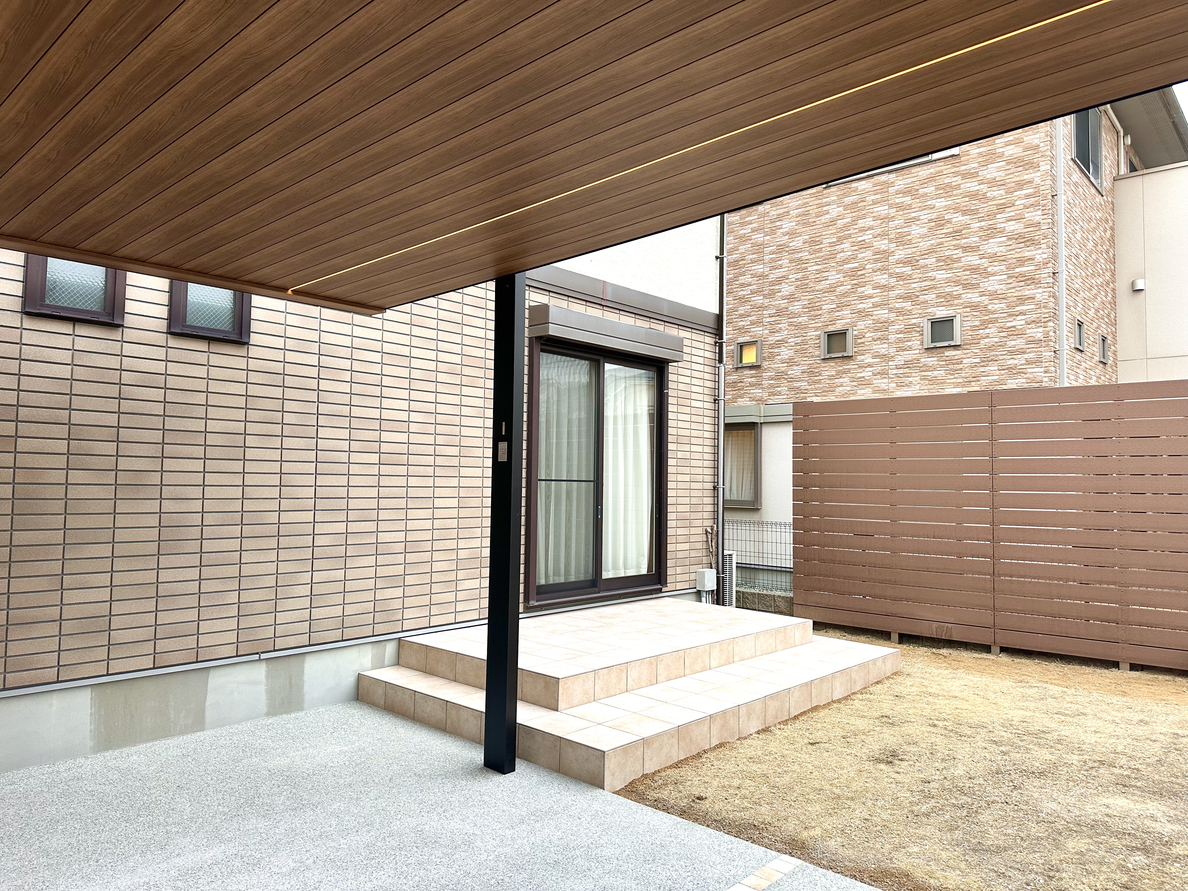 芝生が広がるお庭が、木調を基調とした、統一感のあるカースペースとして生まれかわりました。