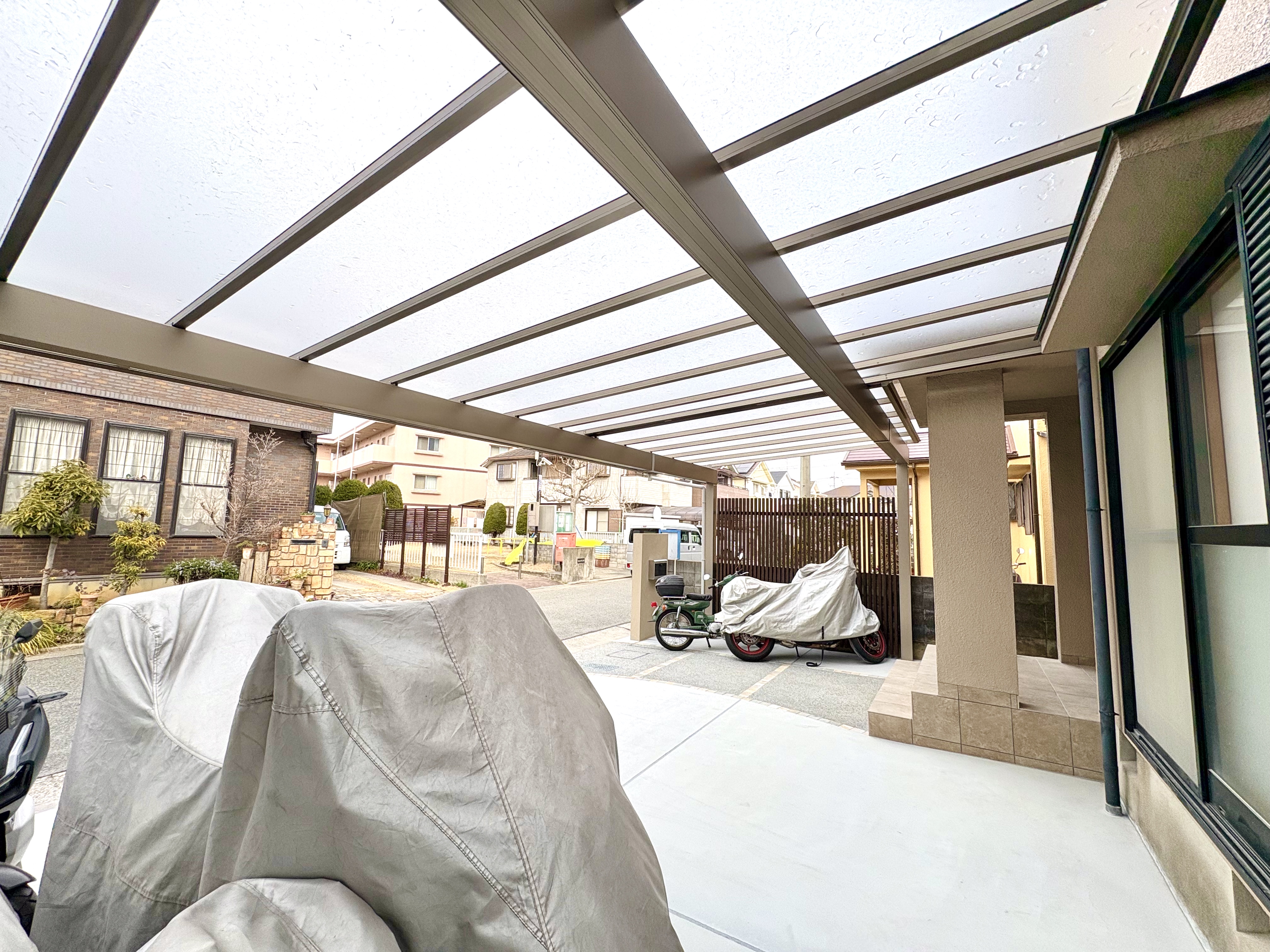 カーポートとお家の間に隙間がないので、雨の日の車の乗り降りも安心です。