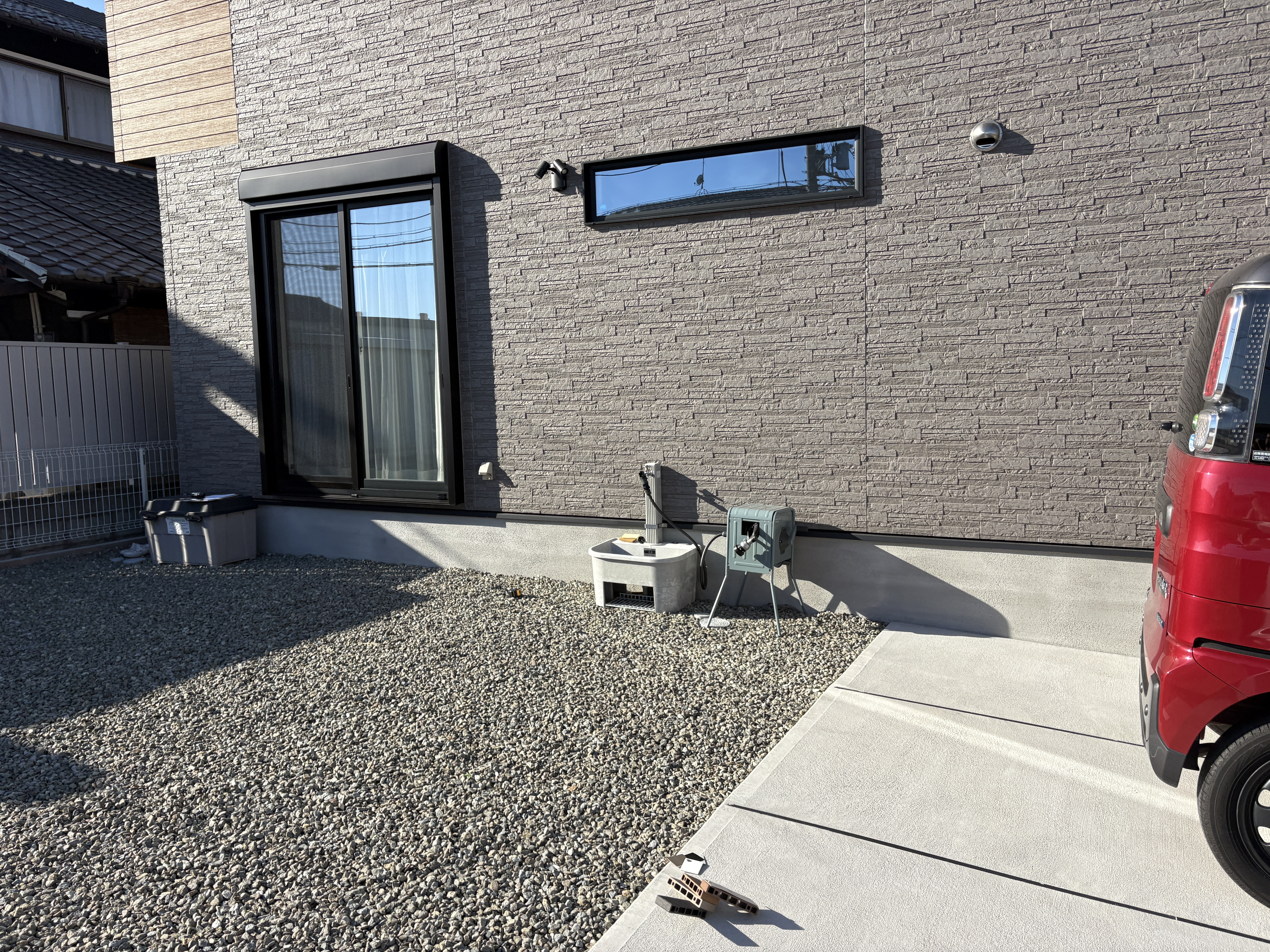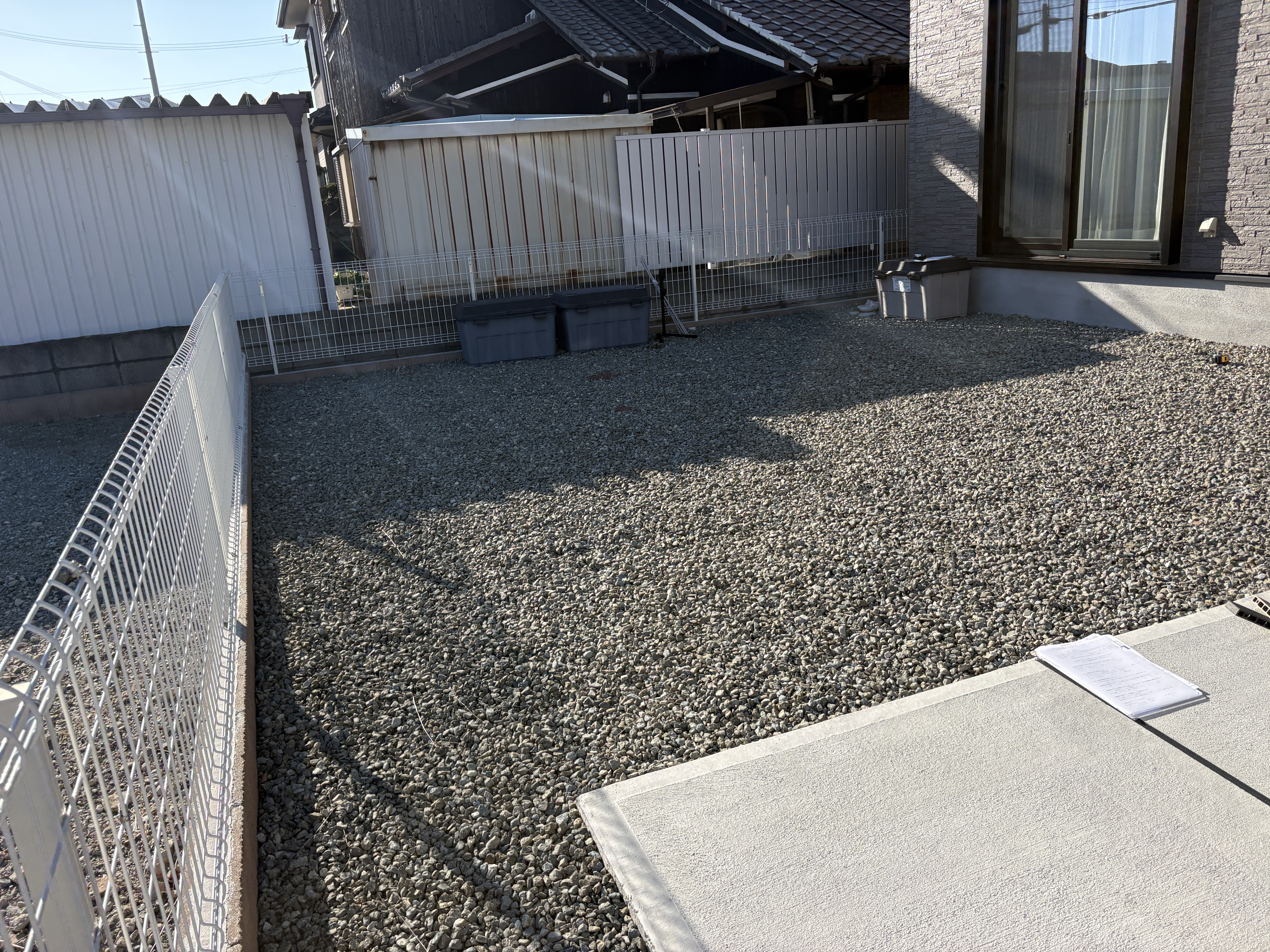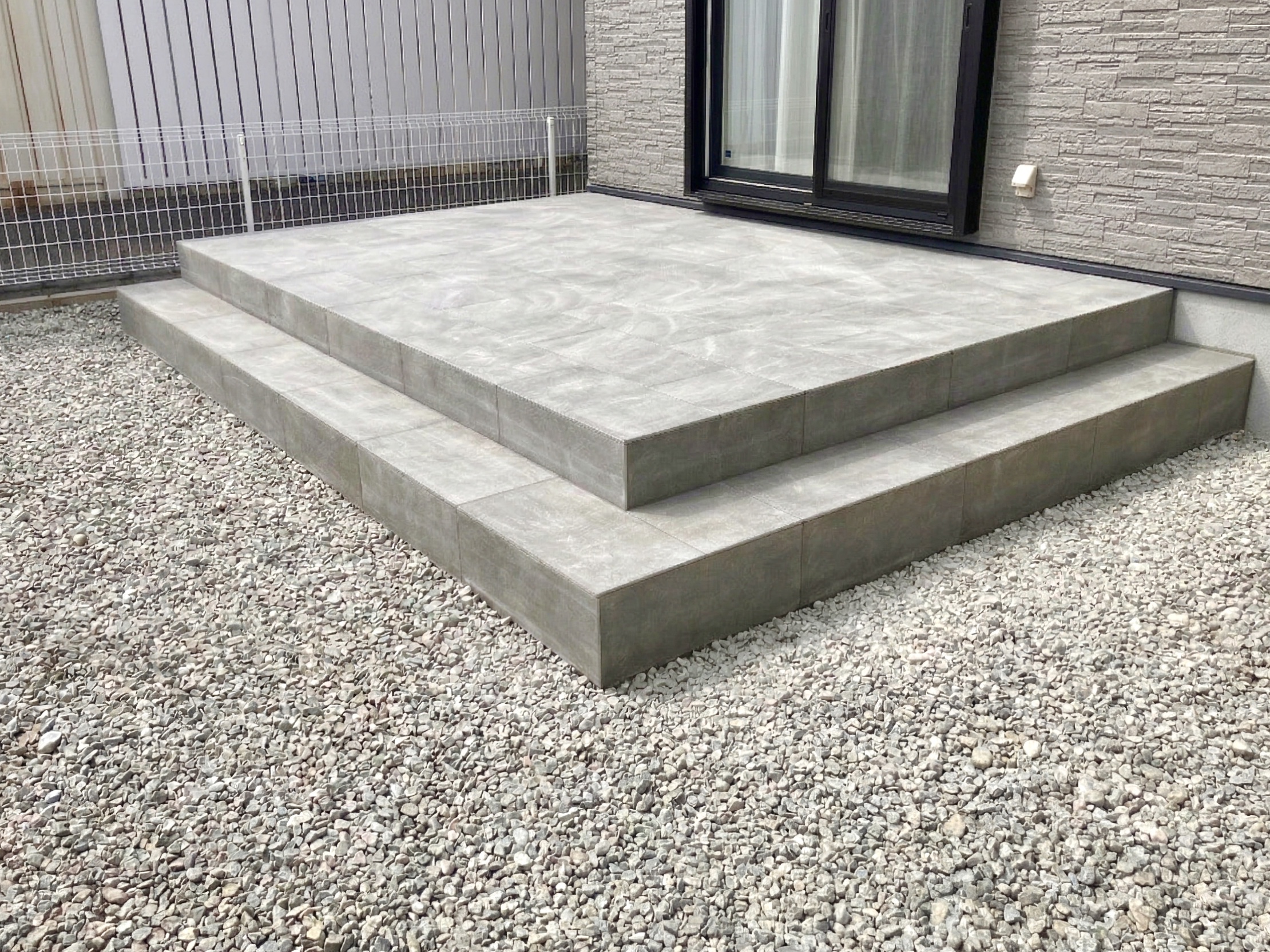 目隠しフェンスとタイルデッキのご依頼をいただいた、加古川市のN様。ご家族が安心して寛げるお庭をご希望でした。