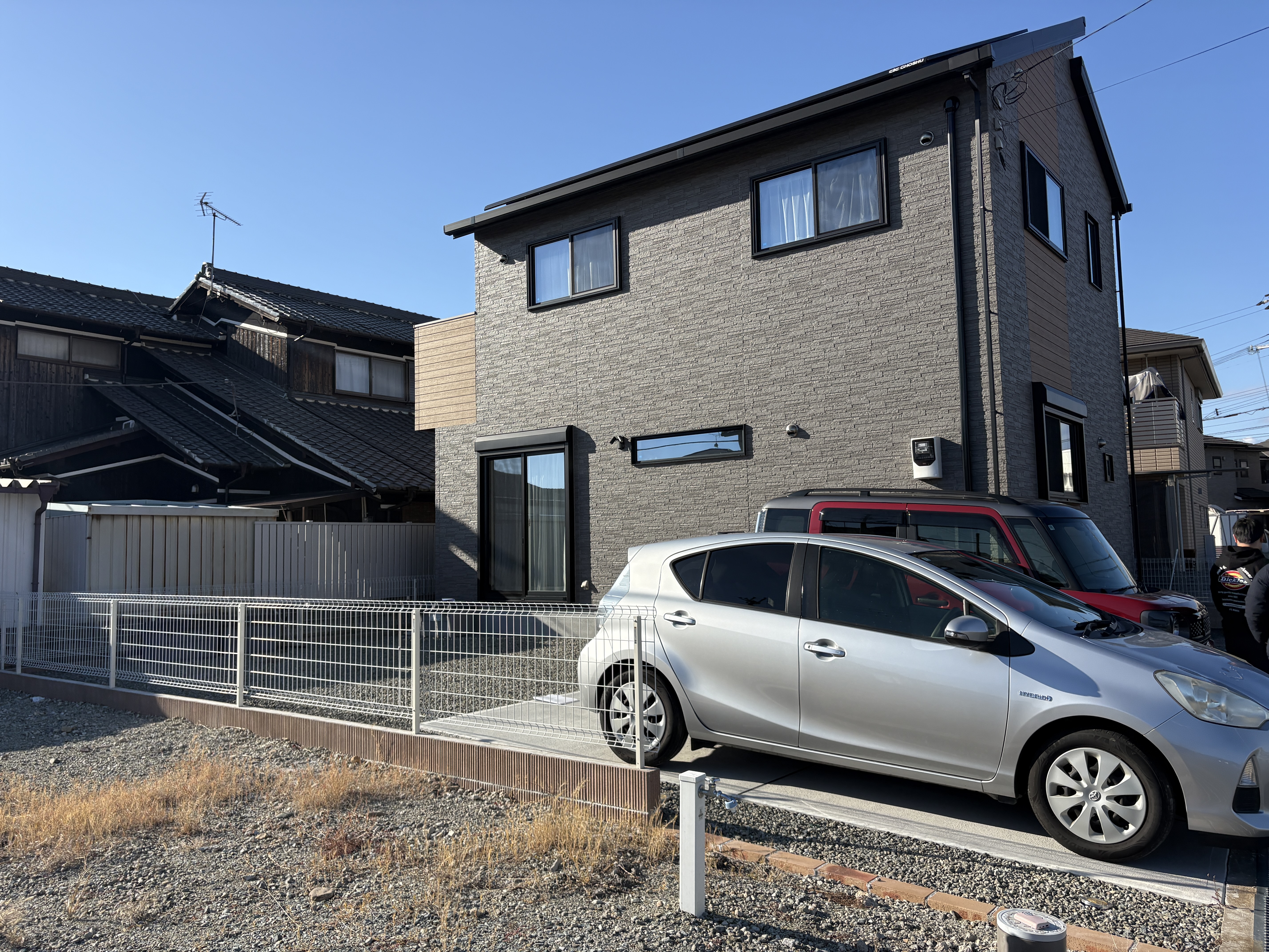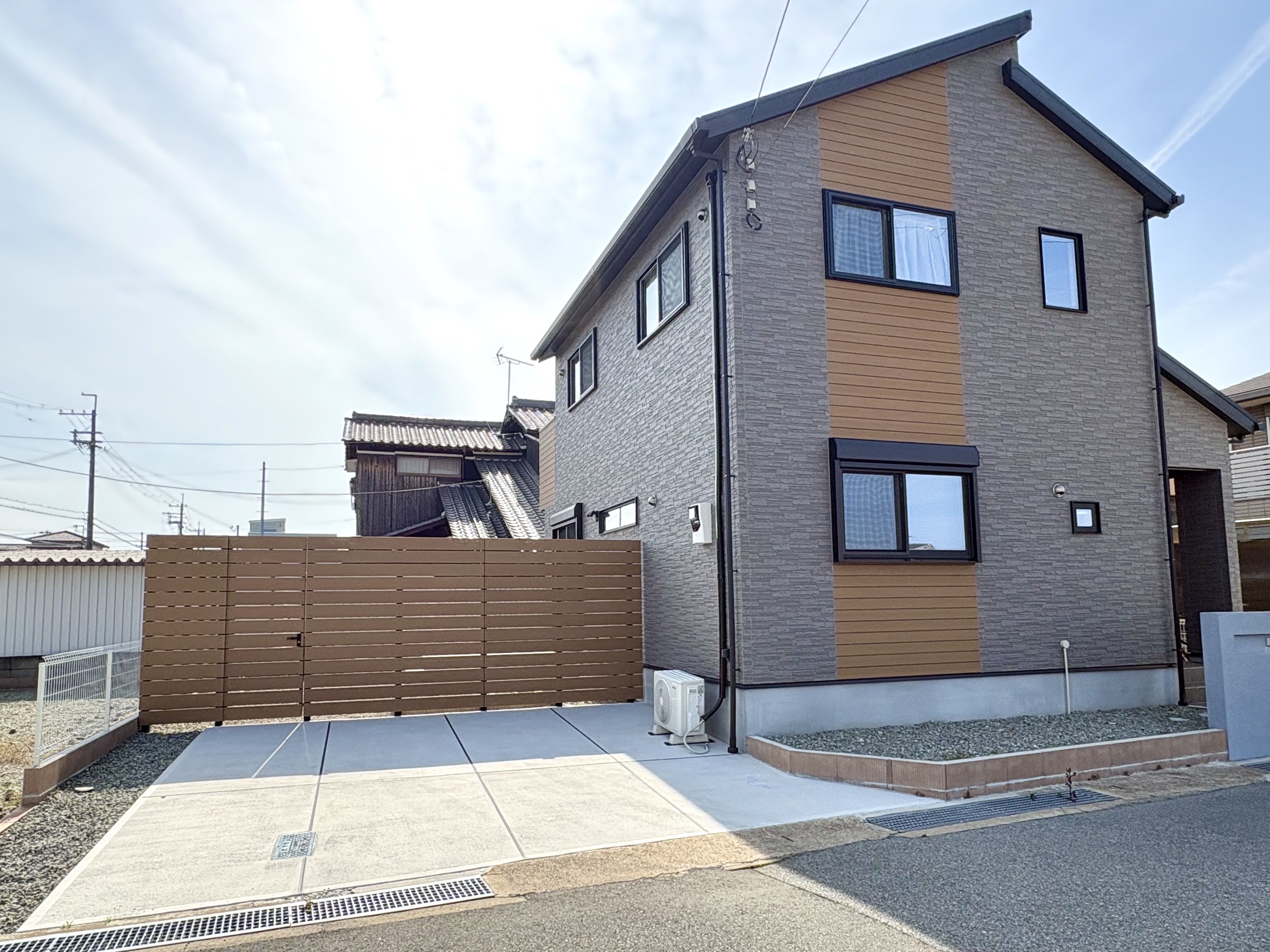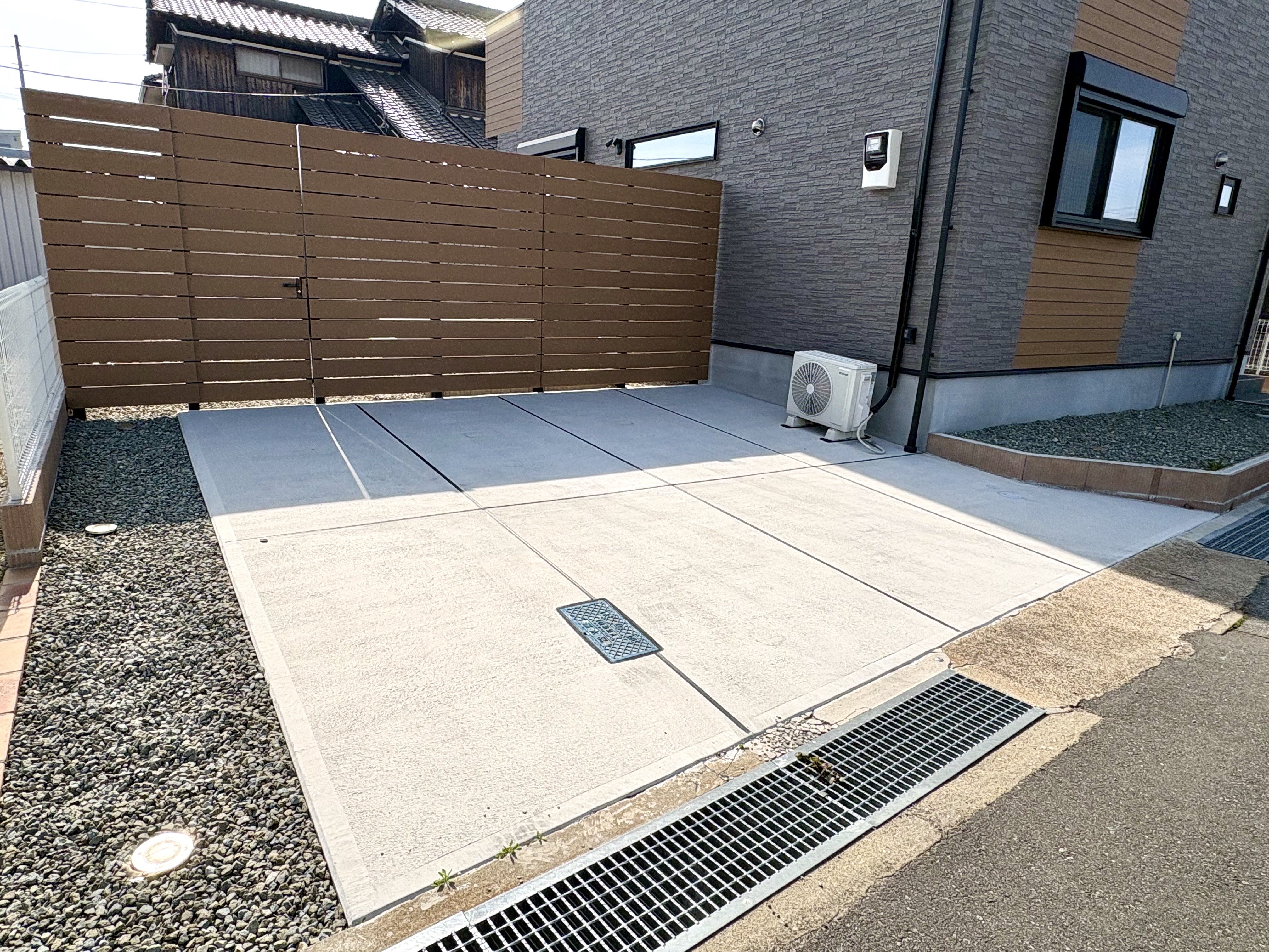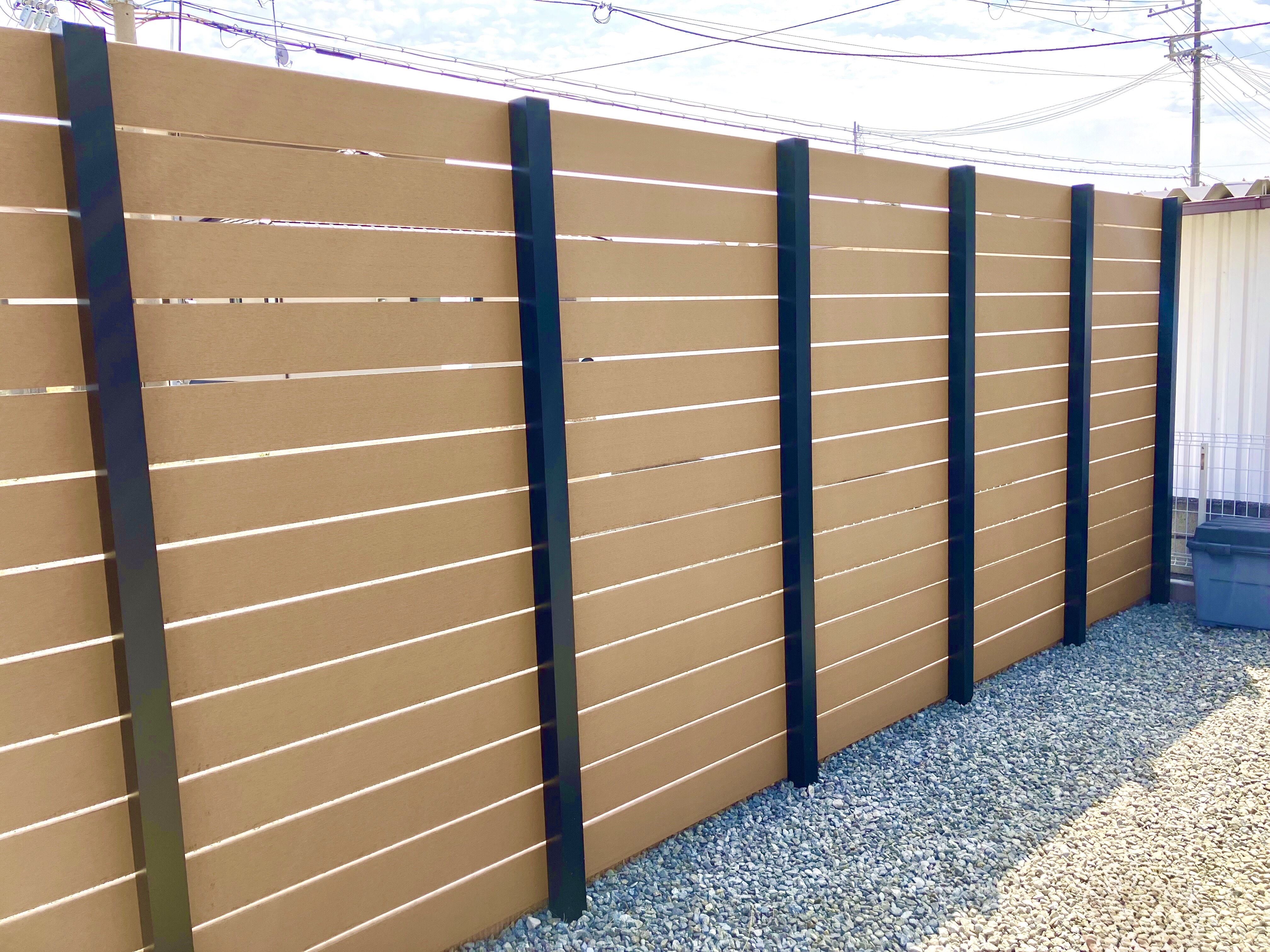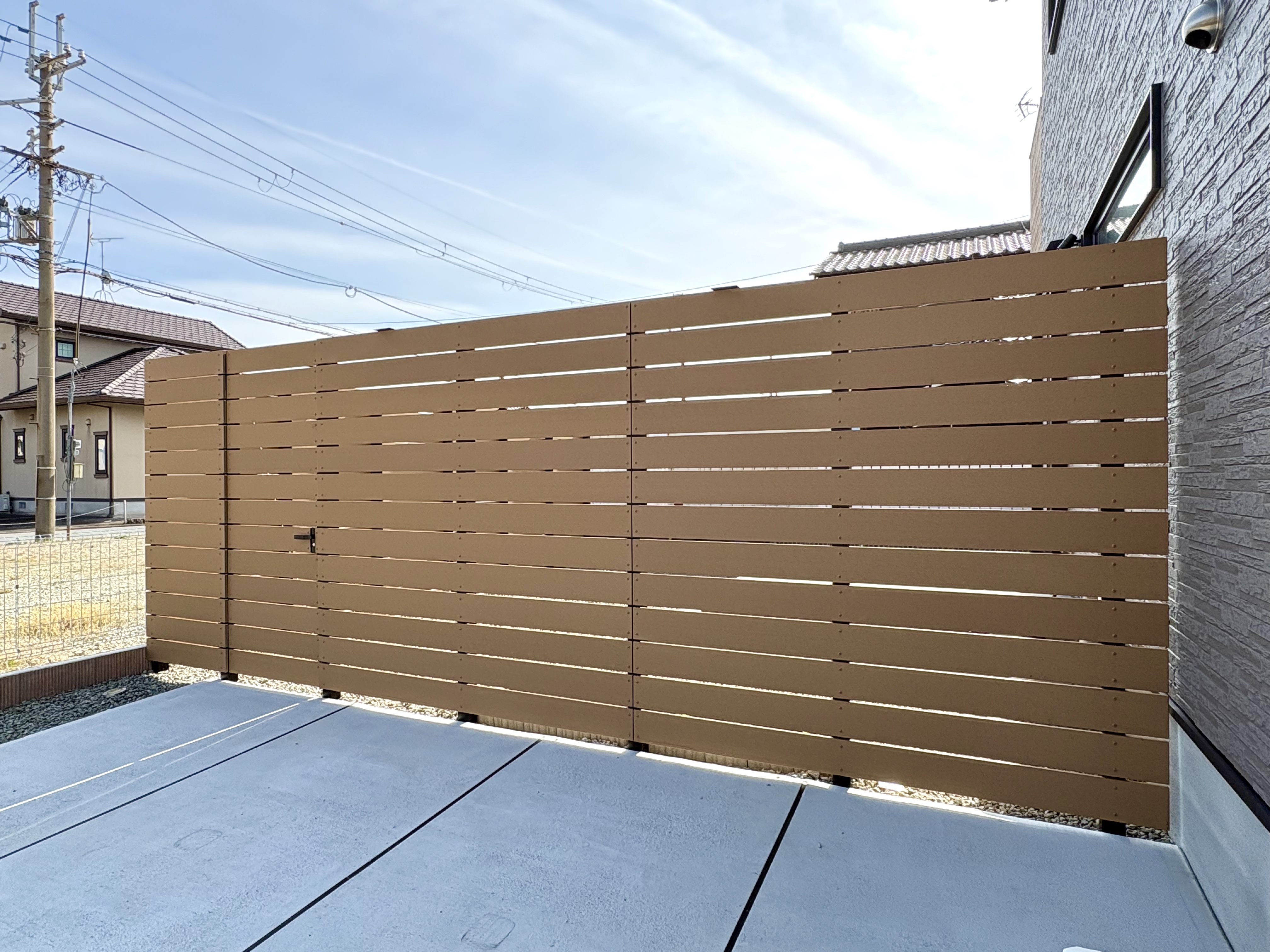 お家の外壁に合わせ、目隠しフェンスの色はエコモック・サンディーブラウンを選びました。